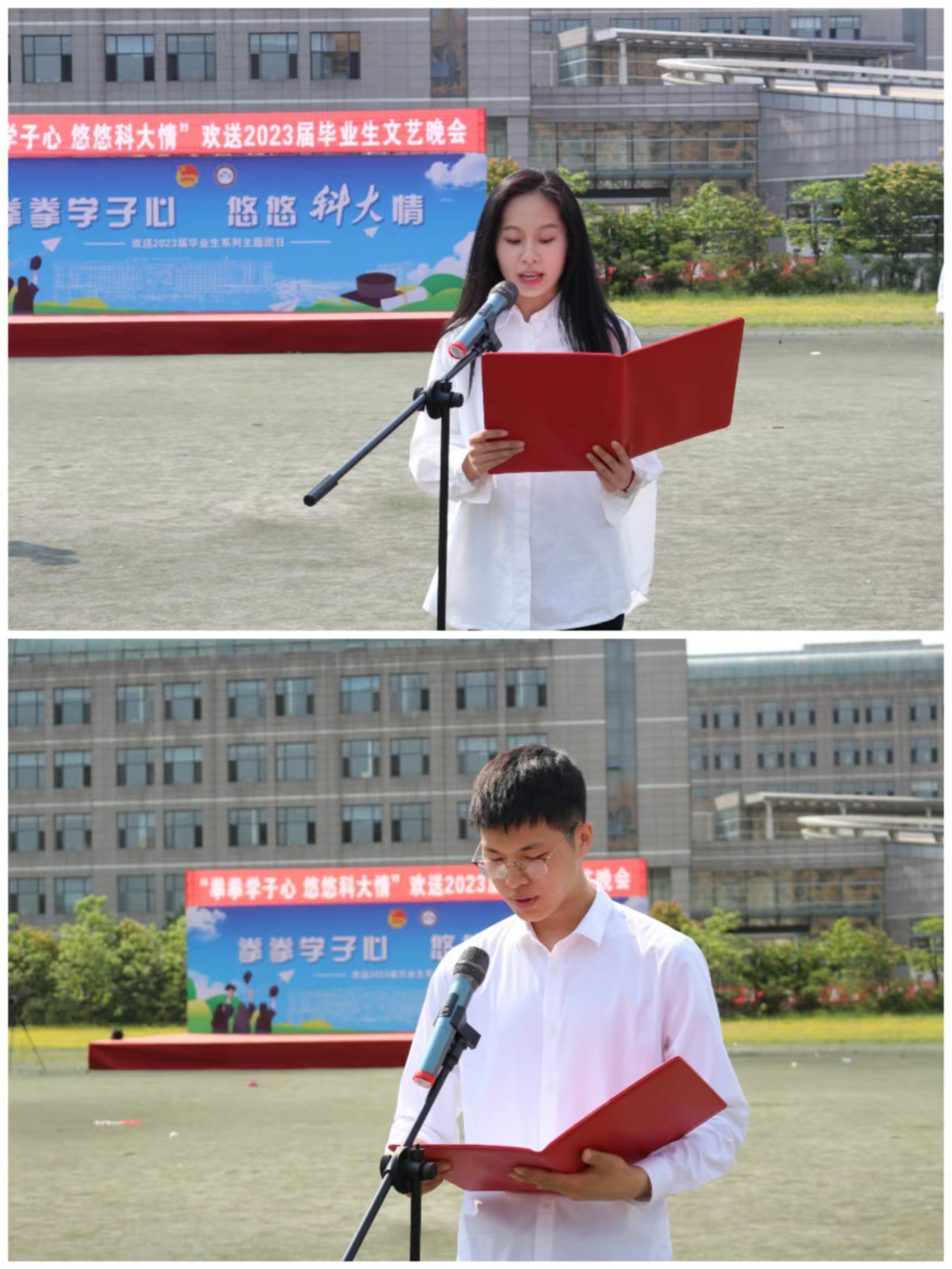 毕业生代表工审19-1班程娇月、税收19-2班王成鸿分别宣读了《毕业生廉洁从业倡议书》、《毕业生安全离校倡议书》,号召毕业生恪守职业道德、廉洁从业、不忘初心,遵守公司校规校纪,文明毕业、文明离校。