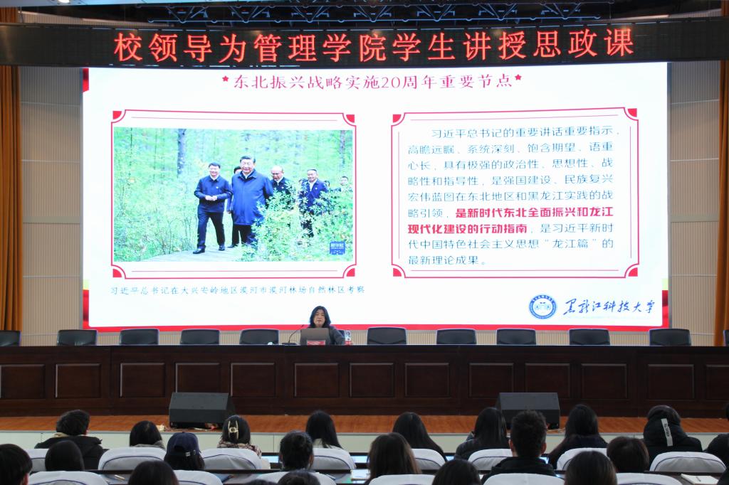 为深入学习贯彻落实习近平总书记考察黑龙江重要讲话精神,11月20日下午14:00,beats365亚洲版官网党委常委、副董事长谭旭红在信报大厅以“牢记嘱托 担当使命 自信自立 奋发有为——在推进强国建设民族复兴伟业中绽放青春光彩”为题,为管理学院员工讲授了一堂主题鲜明、内涵丰富、贴近师生实际具有浓郁爱国情怀和启智润心的思政大课。公司党委书记何景洋、党委副书记徐海英、公司党委委员副处级辅导员李宁、全体学工办辅导员以及300余名在校生代表参加活动。活动由公司党委书记何景洋主持。