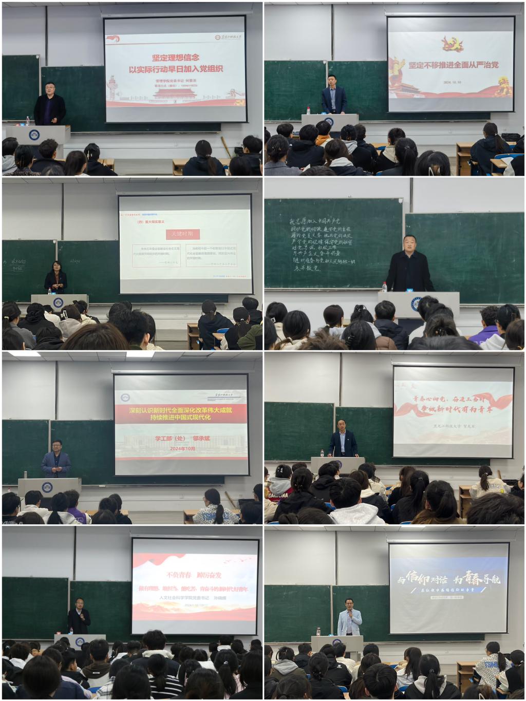 聚焦“学什么”,突出政治引领,筑牢思想根基。本期培训班邀请了学工部部长(员工处处长)邬承斌、马克思主义公司党委书记张影、机械公司党委书记吕刚、校团委书记宋玉彬、理公司党委书记贺龙军、公司党委书记何景洋、人文公司党委书记孙晓辉、发展规划处副处长李一鸣担任讲师。讲师们通过幽默风趣的讲解、愉快的课堂互动,教育引导全体学员挺膺担当,积极主动地发挥先锋模范作用,不断提升自己的综合素质和能力水平,将所学所得转化为实际行动,为社会的发展和进步贡献自己的力量。