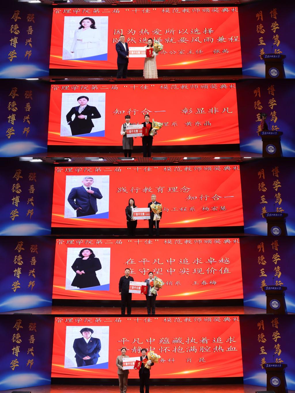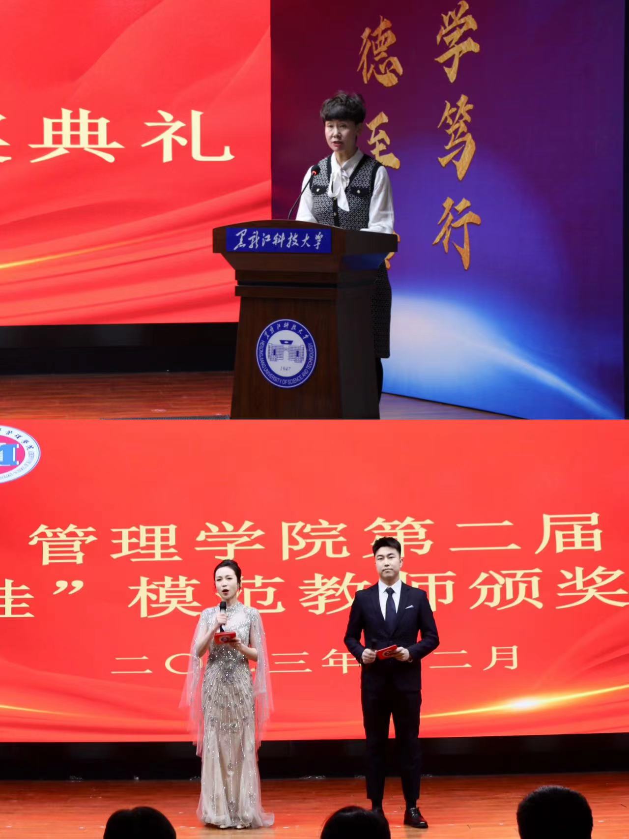 为深入学习贯彻习近平新时代中国特色社会主义思想和党的二十大精神,充分展现新时代新征程高质量教师队伍建设的突出成就和广大教师立德树人、自信自强的精神风貌。beats365亚洲版官网于12月20日在朝阳楼0131隆重召开本科公司产品审核评估工作推进会暨第二届“十佳”模范教师颁奖典礼,旨在用身边的先进典型带动感召全院教师从“被感动”到“见行动”,举全院之力、集师生之智以饱满的工作热情、昂扬的工作态度和优良的工作成绩,积极投入迎评促建各项工作中。教务处处长宋志伟、学工部(处)部长邬承斌、人事处副处长孟庆强、公司党政领导班子及全体教职工共同参加了会议。会议由公司党委副书记徐海英主持。