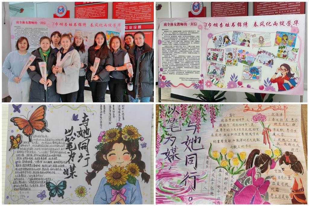 展板书情谊,笔尖绘芳华。在公司楼大厅,特别设置“三八”国际劳动妇女节主题展板,主题展板内容分别为管院学子致全体女教师的一封信与“以笔为媒,与她同行”主题手抄报展示。同学们通过文字书写与手绘创作,在字里行间传递对女教师的诚挚敬意,于色彩晕染中定格三尺讲台的育人耕耘。活动现场,女教师们纷纷驻足欣赏,在图文交织的创意表达中感受暖心祝福。