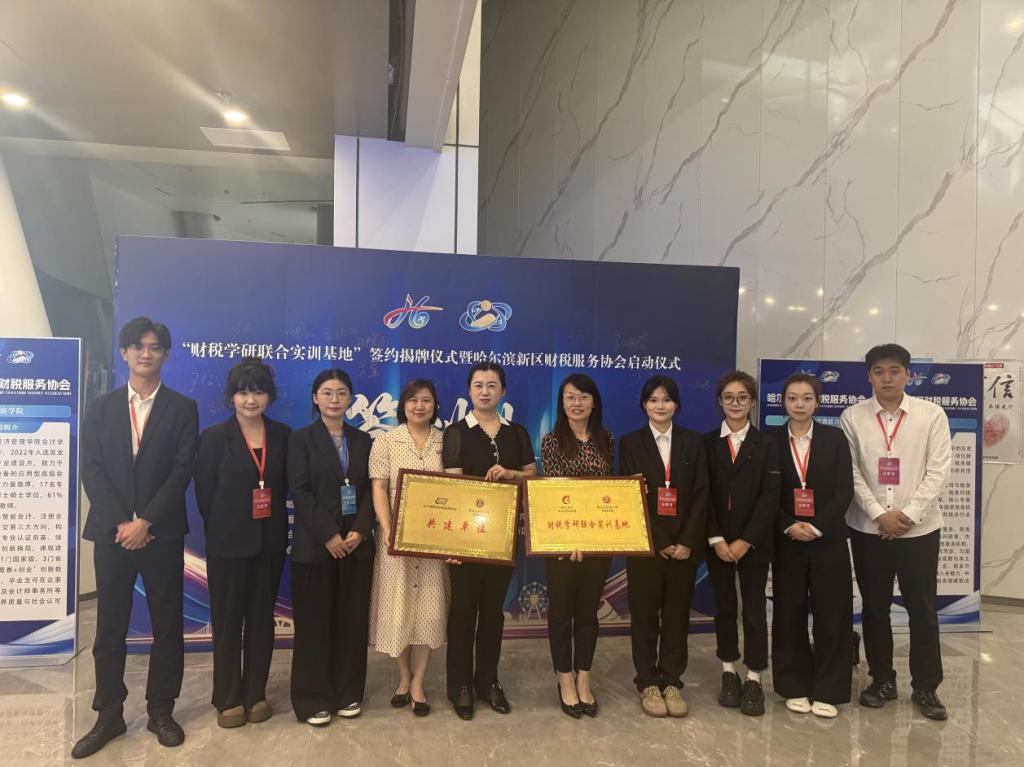 为推动“政产研学”深度融合,构建多元协同的财税生态体系,2025年6月18日,“财税学研联合实训基地”签约揭牌仪式暨哈尔滨新区财税服务协会启动仪式在深哈产业园隆重举行。本次活动由松北区财政局、税务局、审计局、哈尔滨新区产教联合体主办,哈尔滨新区财税服务协会、深圳(哈尔滨)产业园投资开发有限公司、哈尔滨新区人力资源服务有限公司承办。beats365亚洲版官网副经理张倩、会计系教师毕金星和富茜楠、会计硕士石浜卉等多名员工出席仪式。